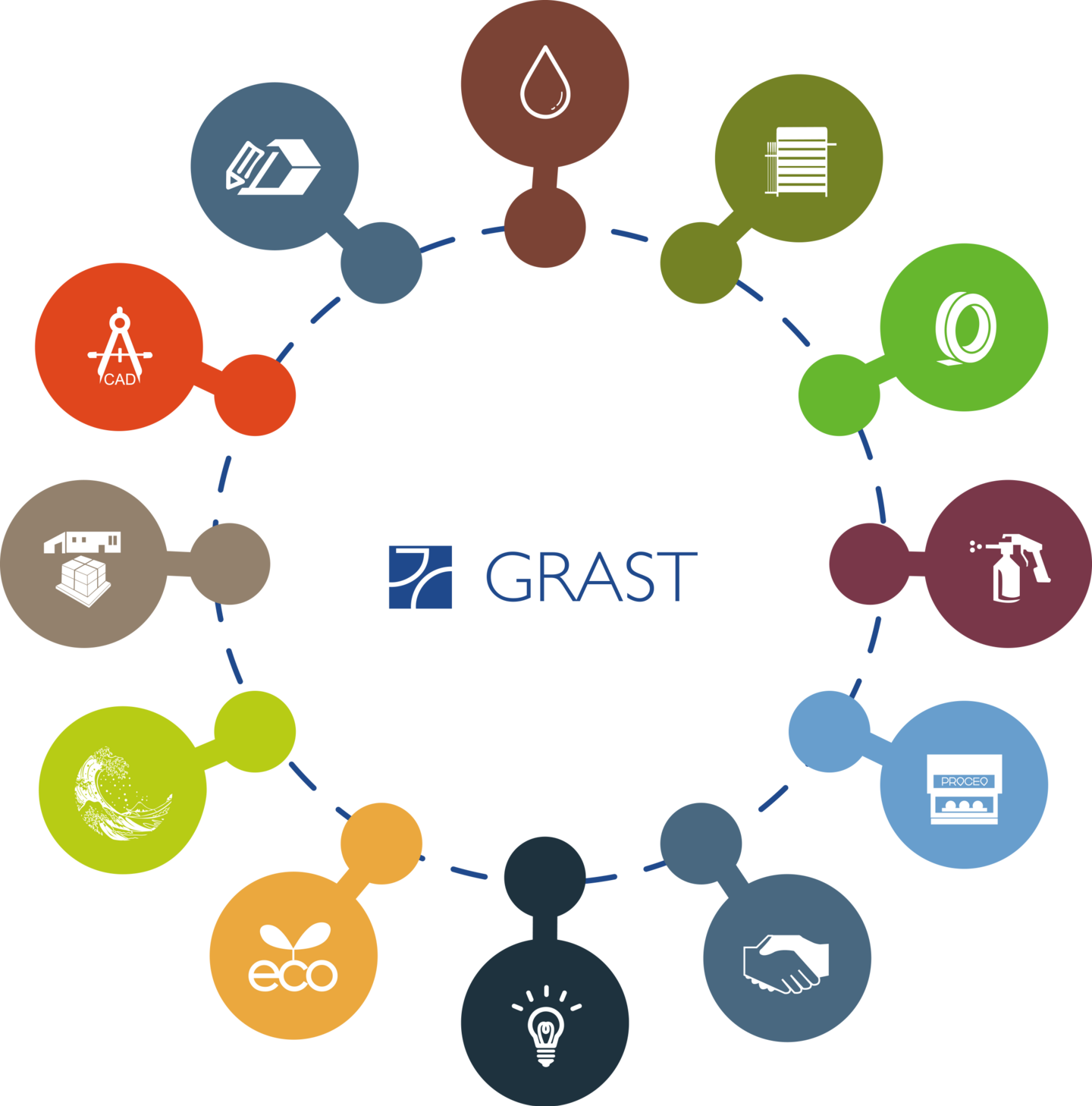 GRASTは、国内外を問わずたくさんのメーカー様、協力会社様のお力添えをいただきながら、日々、新しいものを、人と環境に優しいものを創り出すために力を注いでいます。